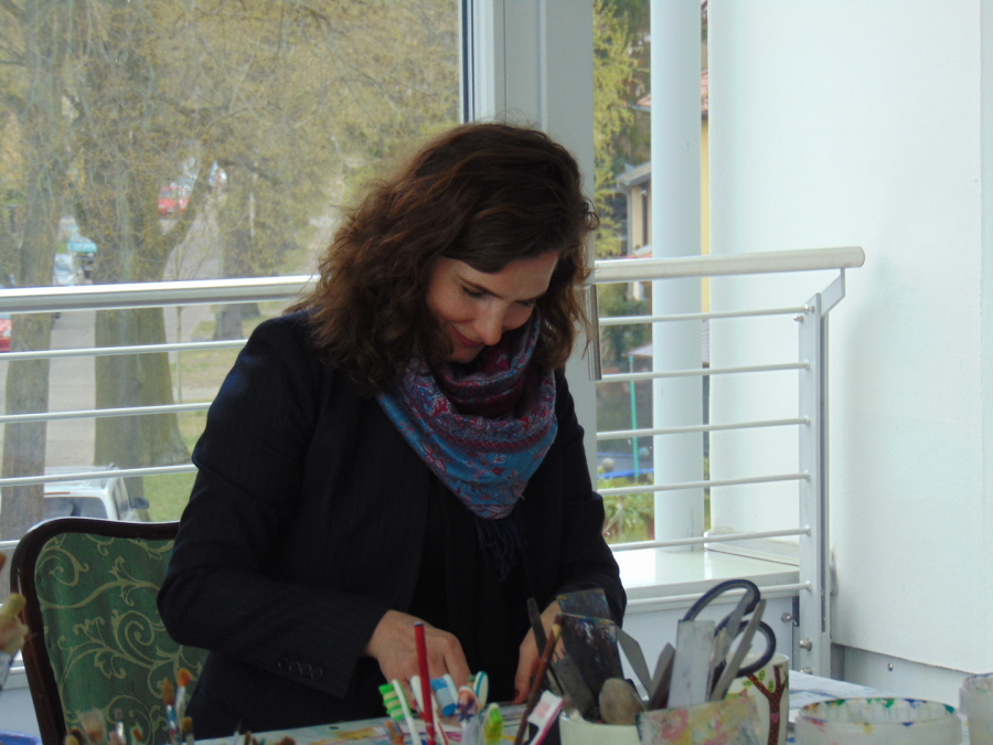 in Ihrem Atelier.