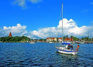 Die Insel Poel ist über einen befahrbaren Damm vom Festland aus gut zu erreichen. Das Wahrzeichen der Insel ist die schon von Weitem sichtbare Kirche aus dem 13. Jahrhundert. Die Sehenswürdigkeiten der Insel sind überschaubar. Zwei Leuchttürme, drei kleine Häfen, vor allem für Wassersportler. Das Inselmuseum ist in der vor 210 Jahren erbauten ersten Schule der Insel untergebracht. Heute kümmern sich 19 Lehrinnen und drei Lehrer (interessanterweise für Hauswirtschaft, Sport und Musik) um die Schülerinnen und Schüler der Insel von der ersten bis zur zehnten Klasse. Auf der Insel Poel kann man nicht anders, als den Alltag vergessen. Urlaub ist angesagt, ohne Ablenkung.